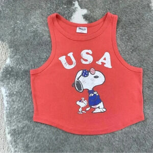 Here’s a super cute tank top by Peanuts and Grayson Threads. Size large. Love the Snoopy and Woodstock USA graphic on the front. Great shape! Cropped, baby doll style fit! :)