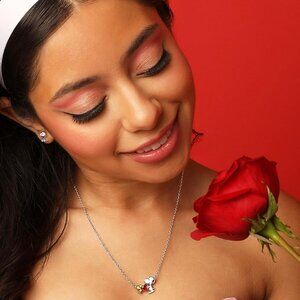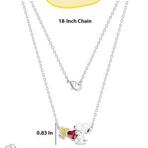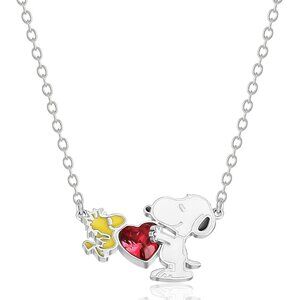 Features: Features a cute pendant of Snoopy and Woodstock with enameled details, surrounding a sparkling red crystal heart for a sweet, loving touch. Silver flash-plated brass chain with a lobster claw clasp for secure wear.