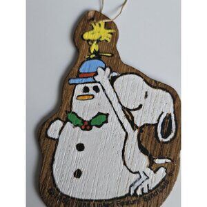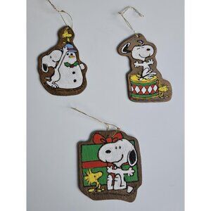 Set of 3 wooden Christmas ornaments featuring Snoopy and his pal Woodstock. Both sides of the ornaments are painted with the same image. They are in great vintage condition considering they were made in the 50s and 60s. A cool collector's item for Peanuts fans!