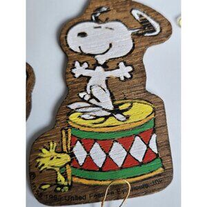 Snoopy and Woodstock Christmas Ornaments Vintage Set of 3 50s & 60s Wooden Retro