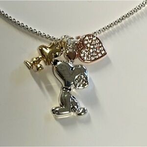 Snoopy and Woodstock crystal heart tri-tone necklace is a charming piece of jewelry that features the beloved characters Snoopy and Woodstock from the Peanuts comic strip. This beautifully crafted piece captures the endearing friendship between Snoopy and Woodstock, bringing a touch of nostalgia and whimsy to your jewelry collection.