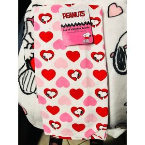 Snoopy super soft 50 by 70s plush throw valentines bundle/lot two kitchen towels