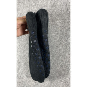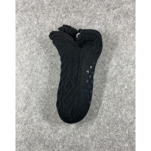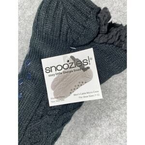 Snoozies! Slipper Socks Mens Size 7-12 Black Cable Sherpa Lined Non Skid Grip