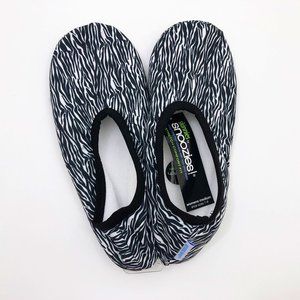 NWT, New With Tags, Sales Samples. These Snoozies Skinnies with Spandex are so comfy and soft. Black & white zebra print make for really cute and comfortable slippers. A perfect gift for the comfort lover in your life or as a treat for yourself!