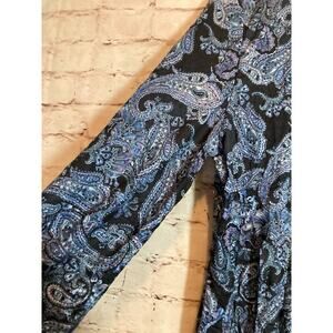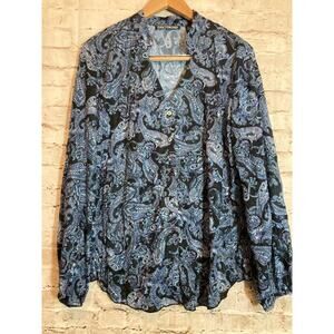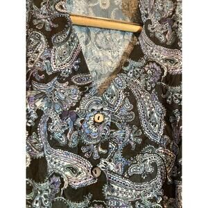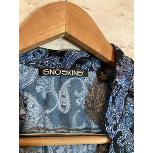 Snoskins Top Womens XL Blue Paisley Button Front V Neck Lightweight Textured
