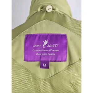 The Snow Beauty Green Winter Down Belted Puffer Coat Jacket in size M is a stylish and practical outerwear option for women. Made with a durable nylon outer shell and insulated with warm down, this jacket is perfect for the winter, fall, and spring seasons. The quilted design and logo accents add a touch of style to the classic puffer jacket silhouette. With its zip-up closure, snap buttons, and pockets, it offers both comfort and functionality for casual occasions. Whether you're bundling up for a chilly day or running errands, this Snow Beauty jacket is a fashionable choice for any woman looking to stay warm and cozy.