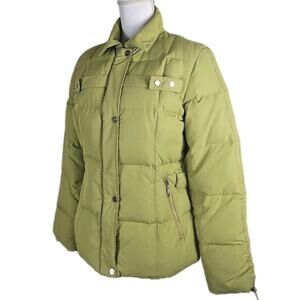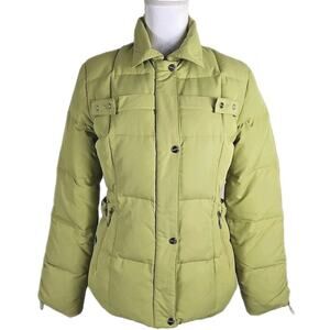 Snow Beauty ~Woman Size M~ Green Winter Down Belted Puffer Coat Jacket Zip-Up.