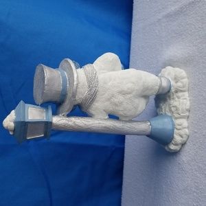 This 8" tall figurine is leaning casually by a vintage styled lamp post. It is in excellent used condition.