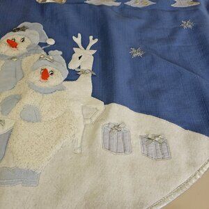 Snow Buddies Tree Skirt 1995 Christmas vtg Pottery Barn 40" blue holiday season