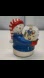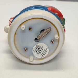 This charming vintage Debbie Mumm music box captures a festive snowman clutching a snow globe featuring playful snow figures. Crafted in the 1990s, it plays the delightful tune "Frosty The Snowman," evoking nostalgic winter memories. A collectible piece steeped in seasonal cheer and artistry.