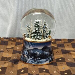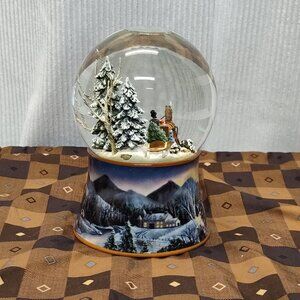 This enchanting snow globe captures a picturesque winter sleigh ride through a snowy forest. The intricately painted base complements the serene scene inside. It plays "Jingle Bells," evoking warmth and nostalgia, making it a charming addition to seasonal décor or a thoughtful gift celebrating the magic of wintertime storytelling.
