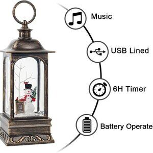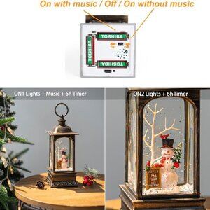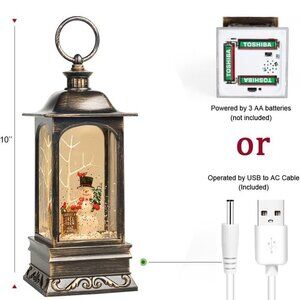 Snow Globes, Snowman Water Lantern, 8 Christmas Music, USB Powered & Battery