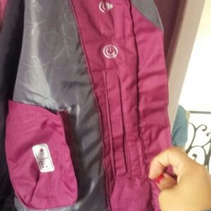 Cozy snow jacket with multiple pockets and adjustable liner. Removable hood and ipod pocket and headphone access.