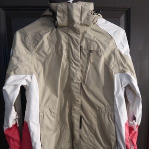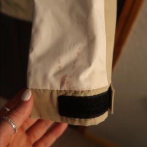 The cutest Alpine snowboarding jacket I’ve ever owned. I’ve outsized it unfortunately so that’s why I’m selling it but in good condition. The only hiccup is shown in the picture above which is a couple tiny bleach marks on the sleeve. So cute, fashionable, and comfy jacket that I personally used for the snow.
