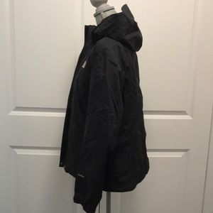 Zip front with Velcro reinforcements. Outer chest pocket. Inner chest pocket. Has zipper inside for lining insert. Front slash pockets. Hood is detachable by zipper and buttons.