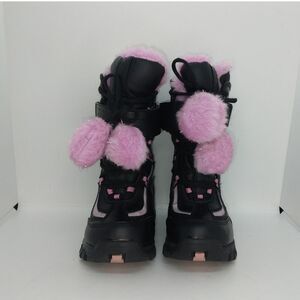 Snow Kitten Toddler Girls Pre-owned Black & Pink Faux Fur Lined Winter Boots