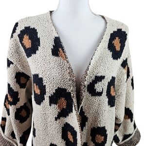 Snow Leopard Animal Print Oversized Teddy Sherpa Cardigan Coat in L