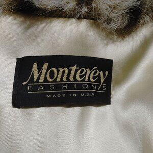 This vintage full-length coat by Monterey Fashions captures the elegance of a bygone era with soft faux fur and luxurious satin lining.