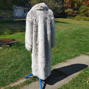 Snow Leopard Fur Long Coat Full Length Faux Vintage Monterey Mob Wife Medium USA