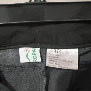 Women's snow pants. Size 14R. Zipper pockets, orange and gray details.