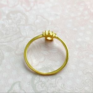 White Fire Opal gold tone ring with 5 round crystal CZ “crown”. Copper metal alloy. Prong setting.