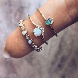 Snow Princess White Fire Opal Gold Crystal Ring