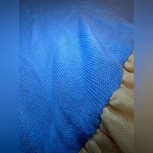 This is a Snow White & the Seven Dwarfs cosplay costume dress in blue and yellow, designed for girls in size Large. Made from 100% acrylic and 100% polyester materials, it features a mesh liner and embroidered detail. The dress is styled as a cosplay outfit, with a Disney theme. It is manufactured in China.
