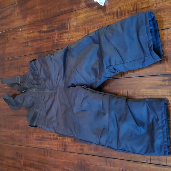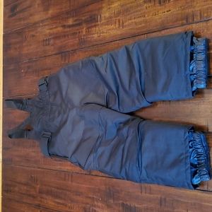 Toddler boys' snow bib, perfect for cold weather and snowy activities. Front zipper for quick and easy dressing, adjustable shoulder straps and elastic waistband with side buckles. Full length design with elastic cinched cuffs that stay put. Polyester and machine washable.