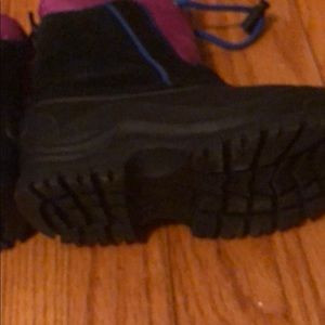 Little Girls Snow Boots! Excellent condition as they were never worn! Nice thick lining, black on bottom half with pink and blue trim. Draw sting toggle