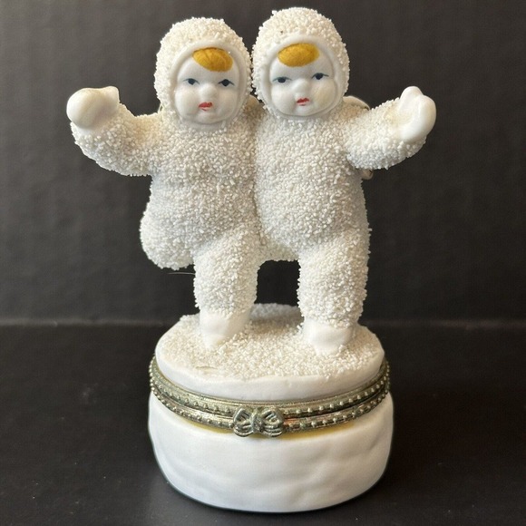 Snowbabies Trinket Box Twins 4" Snow Angels Figure Ice Skating Figurine CLEAN