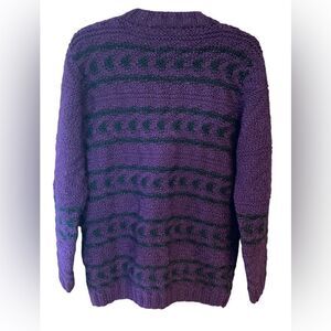 Snowbird Sz M Purple Black Chunky Knit Grandpa Button Up Winter Wool Cardigan