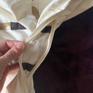 Super sweet off white women’s Core snowboarding jacket. Lots of extra pockets for a smooth sailing down the mountain. Only worn it a few times. It’s got venting in the pits and draw strings for the bottom to keep the snow out and on the hood to keep it snug on while riding. Super efficient, used to have matching pants. Size Small.