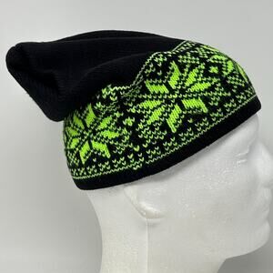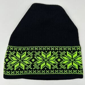 Snowflake Beanie Winter Hat Toque Ski Skiing Skier Nordic Fair Isle Black