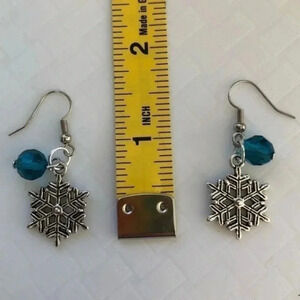 Snowflake Blue Silver Handmade Drop Earrings NWT