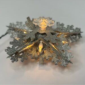 Snowflake Christmas Tree Topper Silver Glitter White Lighted 8" Diameter