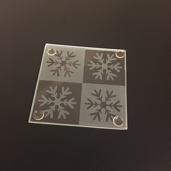 6 glass snowflake coasters with grips on the bottom. Perfect winter accessory! Comes with all 6!
