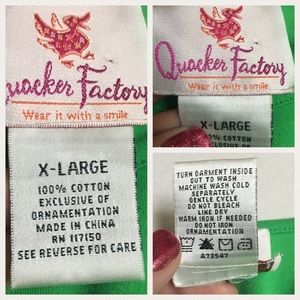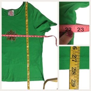 In EUC! This is a size XL t-shirt by Quacker Factory that features a snowflake design of red, silver, & gold metallic beads on a green t-shirt material background. No stains, tears, or flaws noted. All snowflake gems intact. Perfect for the upcoming Christmas Holiday season! Please see pictures for labels & additional details, thank you!