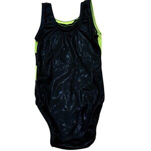 Snowflake Designs Shiny Black & Green Gymnastics Leotard Large