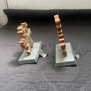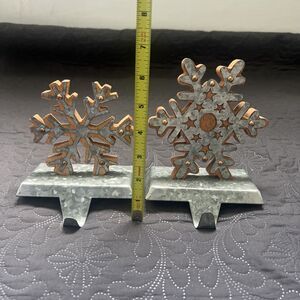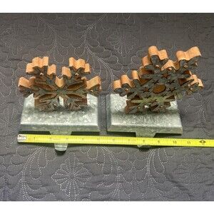 Vintage Galvanized metal snowflake shaped stocking holder 2pc Set.