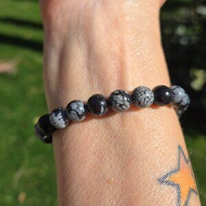 Snowflake Obsidian Gemstone Bracelet. Beaded Bracelet are 8mm. 100% all-natural Gemstone, variations in shape, size & color is expected.
