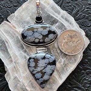 Snowflake Obsidian and Black Onyx Stone Jewelry Crystal Pendant