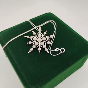 This product is a versatile snowflake pendant/brooch combination on a 24-inch box chain. The pendant is in the shape of a snowflake, crafted from 925 silver. The necklace is in a stylish pendant design, perfect for adding a touch of elegance to any outfit. The combination of the silver metal and white color makes it a classic and timeless piece of jewelry that can be worn for various occasions.