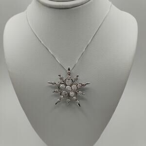 Snowflake Pendant/Brooch Combo in Sterling Silver on a 24-inch Box Chain