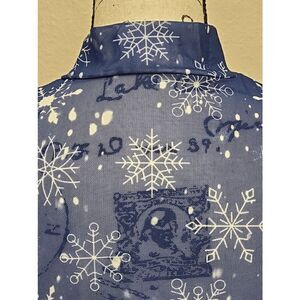 ❄️ Snowflake Print ️Long Sleeve Mock Neck Navy Blue Sheer Mesh Top SIZE L NEW