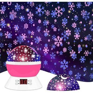 Snowflake Projector Night Light Indoor, Snowflake Nightlight with Timer, Stars