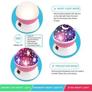 🧿Two in One Light Projector : I come with 2 film options, snowflake and a star theme. I will show vivid and colorful stars or snowfall on your wall and ceiling, 360 degree rotation LED night light projector delivers 17 lighting effects, getting you immersed in the scene!