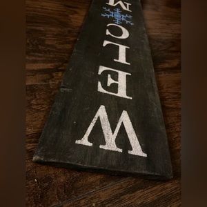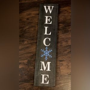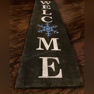 Hand painted by me! Welcome sign with snowflake. Dark stained wood with clear weather proof top coat. Measures 31.5 inches high by 7.5 inches wide and .5 inches thick.