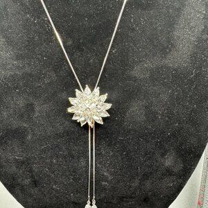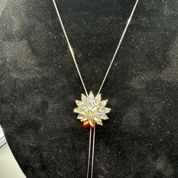 Whimsical snowflake design sweater chain pendant necklace. Y-Necklaces with fashionable creative style, dainty chain and snowflake pattern.