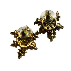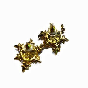 Snowflake filigree pierced earrings 925 silver & gold clear crystal signed CL