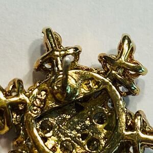 Snowflake filigree pierced earrings done in 925 sterling silver with a goldtone wash and covered in tiny clear white crystals. These are a stunning design that goes with everything and provides plenty of sparkle. Hallmarked 925 & CL on the backs. Simple pushback clasps. In excellent condition - so pretty and ready to wear!